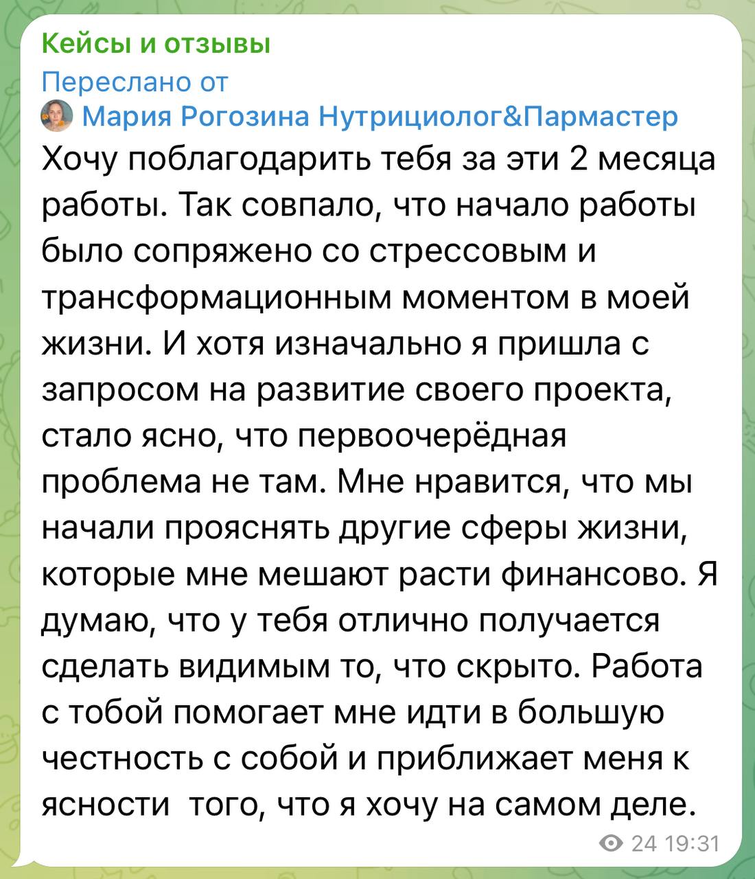 Почему так? Потому что мы сфокусировались не на абстрактной «проработке», а на конкретных изменениях в жизни. Мы работали с её состоянием, чтобы деньги перестали быть просто цифрой — а стали ресурсом для жизни, которой она действительно хочет жить.