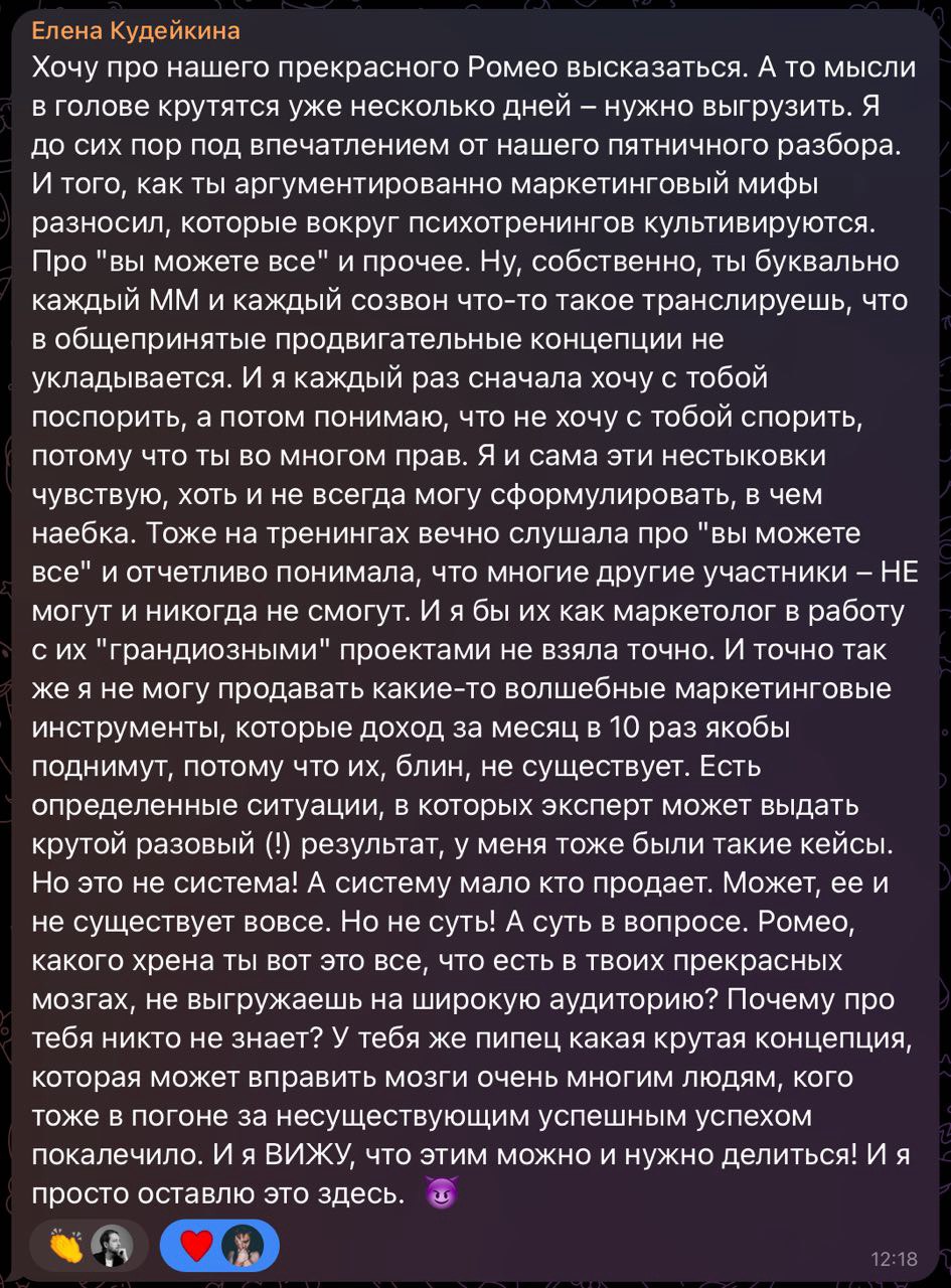 Мы решили начать не с финансовых стратегий, а с работы над состоянием. Ведь деньги приходят к ресурсным людям — это наш главный принцип.