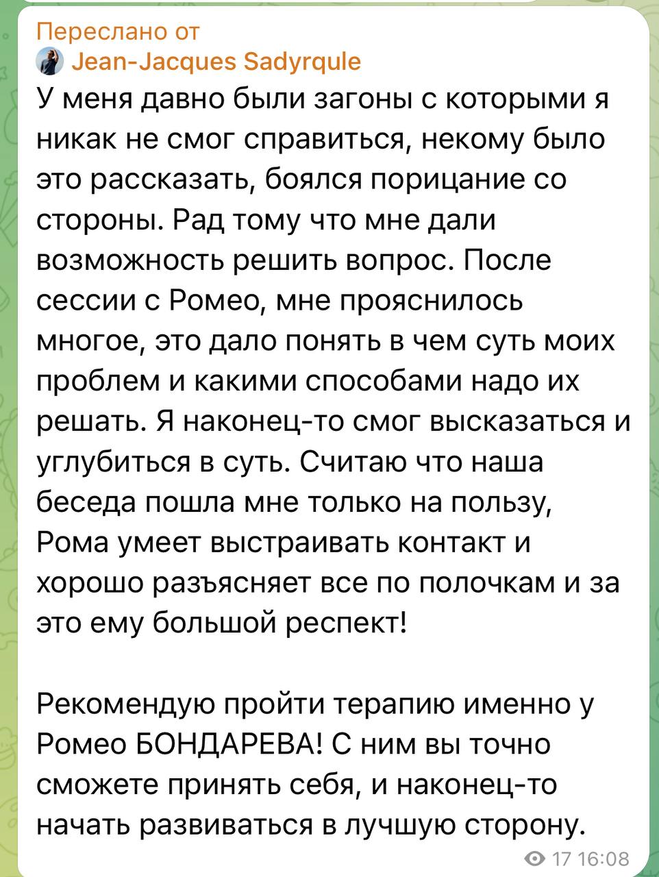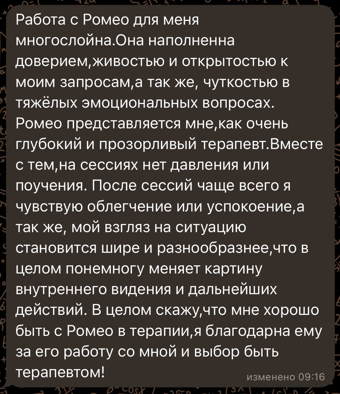 Меня зовут Ромео Бондарев, я практикующий психолог, лечу тревожность и депрессивные состояния без таблеток.
